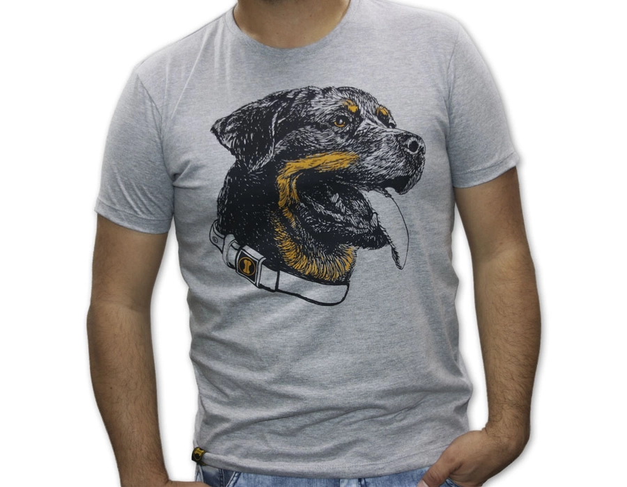 Grandes guardiões e donos de um coração enorme, os rottweilers também ganharam uma estampa exclusiva. A camiseta é feita em malha 30.1, tão macia e durável quanto a camiseta schnauzer, e esse modelo está disponível em 3 cores, malha mescla e branca.